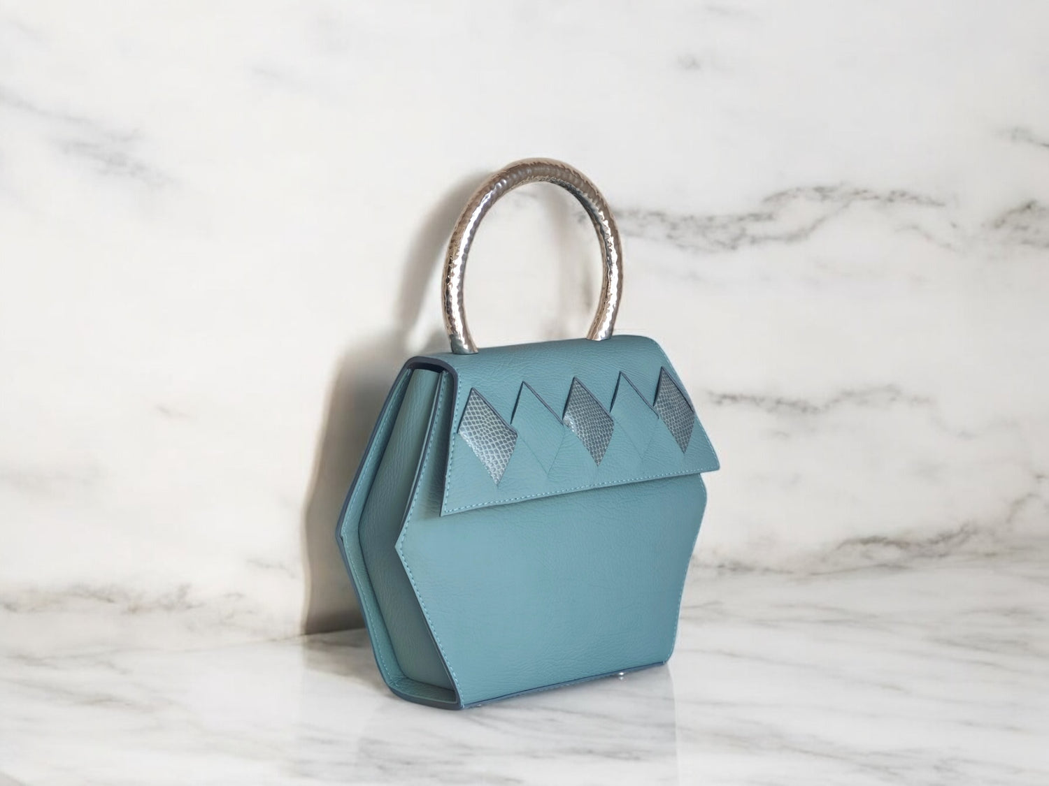 The Batla handbag stands out for its use of eco-friendly materials and precious metals in its artisanal craftsmanship. Handmade with sterling silver, bamboo leather, and apple leather—two sustainable materials that embrace nature—Batla is a piece that honors the beauty of our planet while promoting responsible fashion.