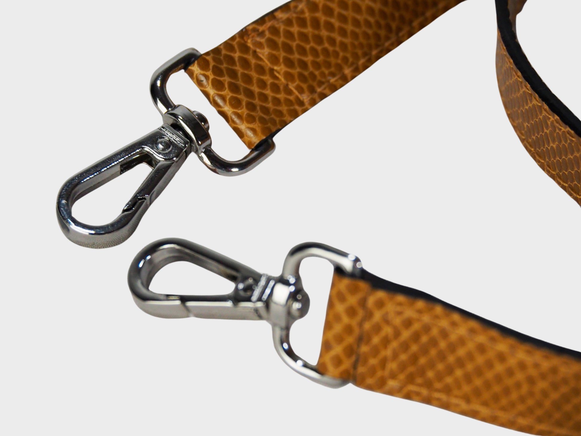 Each handbag is meticulously designed, incorporating high-end jewelry components crafted by Spanish master jewelers, using precious metals and vegan leathers that respect both animals and nature. These leathers are sustainable and sourced from apple waste produced in juice factories in Trentino-Alto Adige, Italy, a region renowned for the excellence of its leather industry within the fashion world and its high standards of quality.